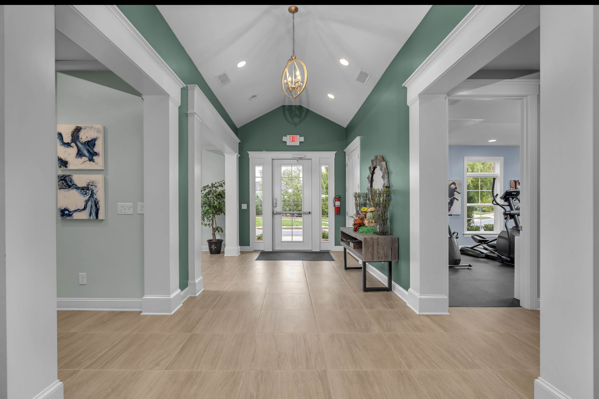 The community offers a clubhouse with resort-style amenities, a fitness facility, pool, and walking trails. Services provided to residents include lawn mowing/fertilization and weed control, landscape maintenance, exterior building maintenance, driveway and street care, gutter and exterior siding cleaning, and common area lighting.